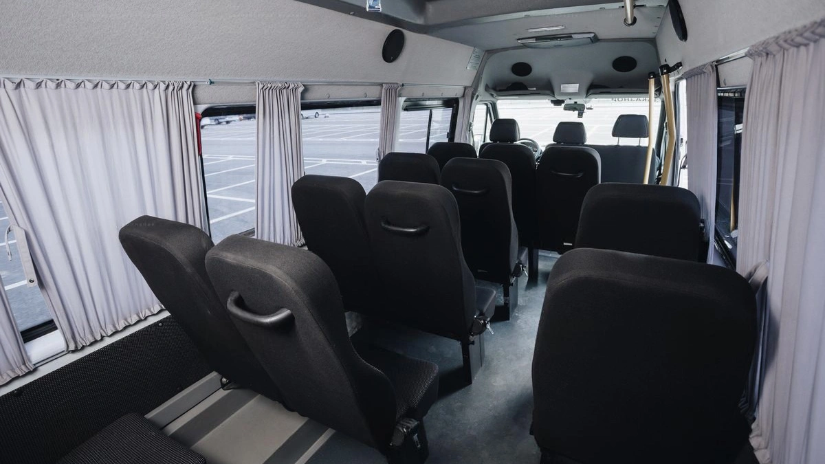 The Mercedes Sprinter Classic is designed for passengers’ comfort. Its spacious interior accommodates up to 18 people with plenty of legroom, while luggage compartments handle suitcases or equipment effortlessly. Modern climate control and smooth suspension make long journeys stress-free. Choosing minibus rental with driver Abu Dhabi means no worries about traffic or directions.