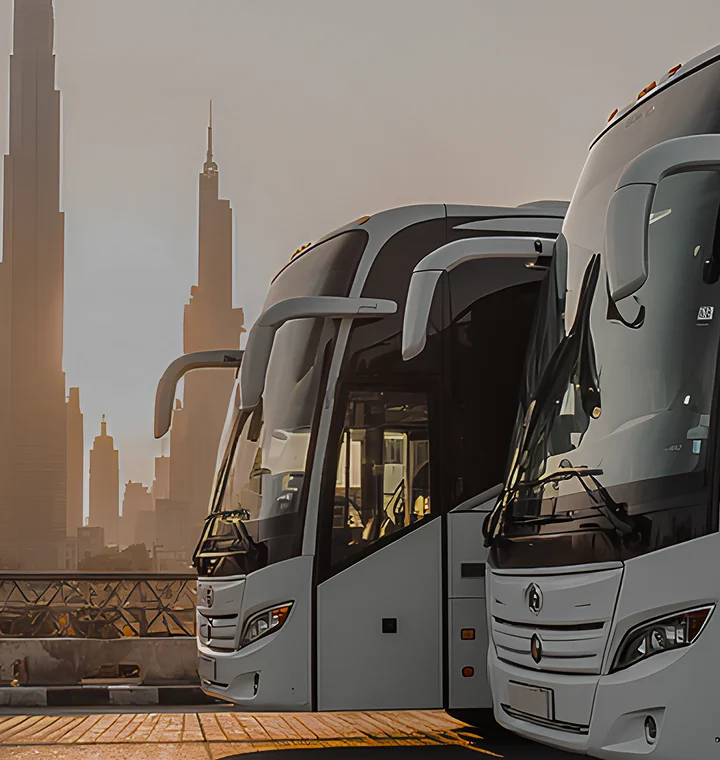 Rent Buses in Abu Dhabi - Planning group travel? Choose from our spacious 58 to 84-seater buses, perfect for corporate events, schools, or tours. Available with AC or non-AC options, all buses come with 2-door configurations for smooth boarding and exit.